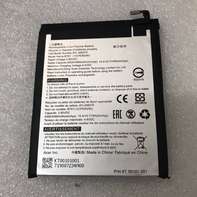 4000mAh/15.4WH Acer BT61 Batterie Téléphone pour Acer Liquid Z6 Plus ATL456579